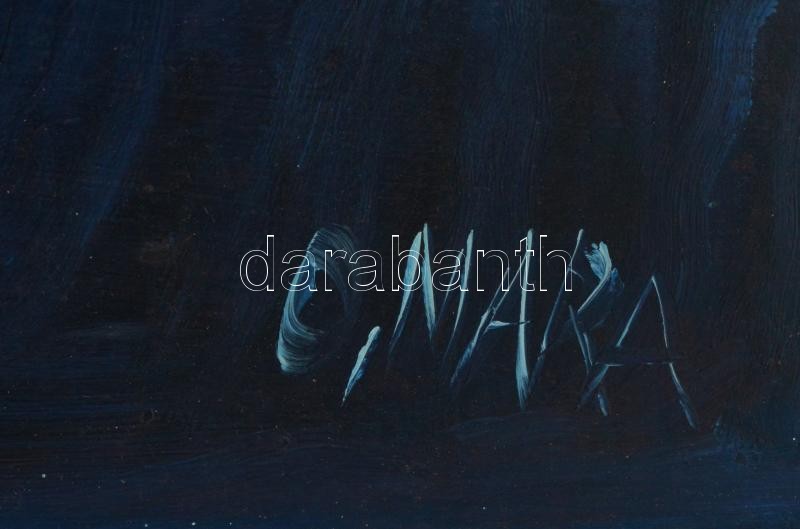 Leírás: Oláh Mara (1945-): Éjjeli tó. Olaj, farost, jelzett, festék hibákkal, keretben, 36×57 cm