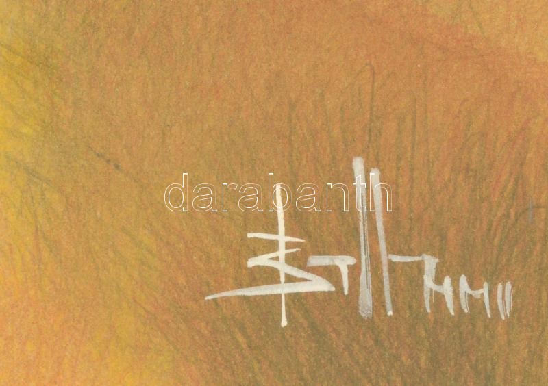 Leírás: Olvashatatlan jelzéssel: Magányosan. Vegyes technika, papír, üvegezett keretben, 57×38 cm