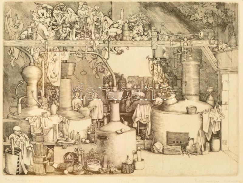 Rékassy Csaba (1937-1989): Pálinkafőző. Rézkarc (PH), papír, jelzett, ... https://www.darabanth.com/hu/360-Gyorsarveres/360.0/Festmenyek-es-grafikak/Festmenyek-es-grafikak~500001/Rekassy-Csaba-1937-1989-Palinkafozo-Rezkarc-PH-papir-jelzett-uvegezett-keretben-27C3~II2070980
