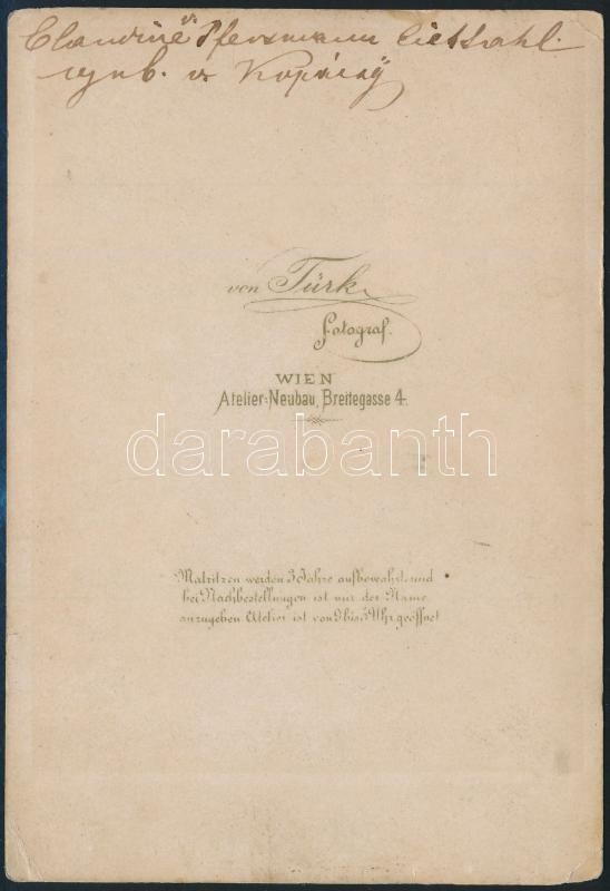 Leírás: cca 1900 a Kopácsy-család egyik nőtagja, fotó von Türk bécsi műterméből, 16×11 cm