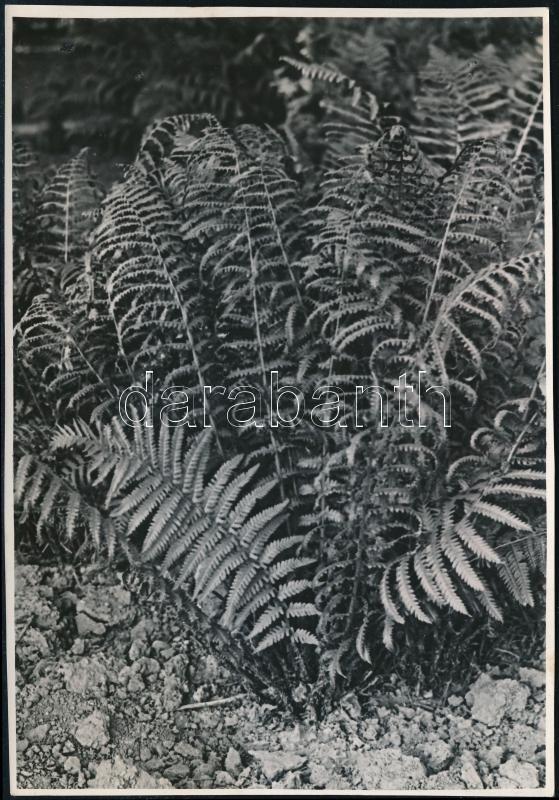 Leírás: cca 1934 Kinszki Imre (1901-1945) budapesti fotóművész által feliratozott, vintage fotóművészeti alkotás (Aspidium), 16,6x11,5 cm