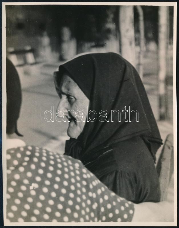 cca 1937 Kinszki Imre (1901-1945) budapesti fotóművész aláírással és pecséttel jelzett vintage fotóművészeti alkotása (Idős néni profilja), 16,3x12,6 cm