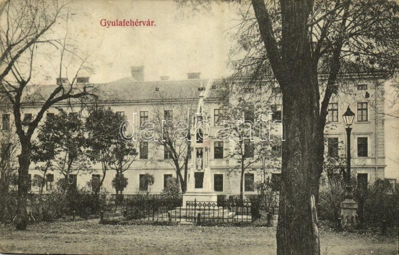 1911 Gyulafehérvár, Karlsburg, Alba Iulia; Lozenau emlékmű. Schäser Ferenc kiadása / Lusenau Denkmal / monument of Ludwig von Losenau (ázott / wet damage)
