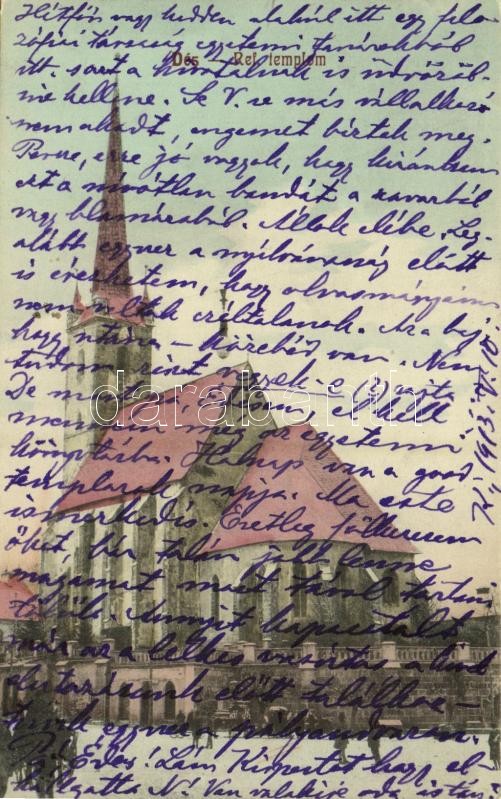 Leírás: 1913 Dés, Dej; Református templom. Kiadja Goldstein Jakab / Calvinist church