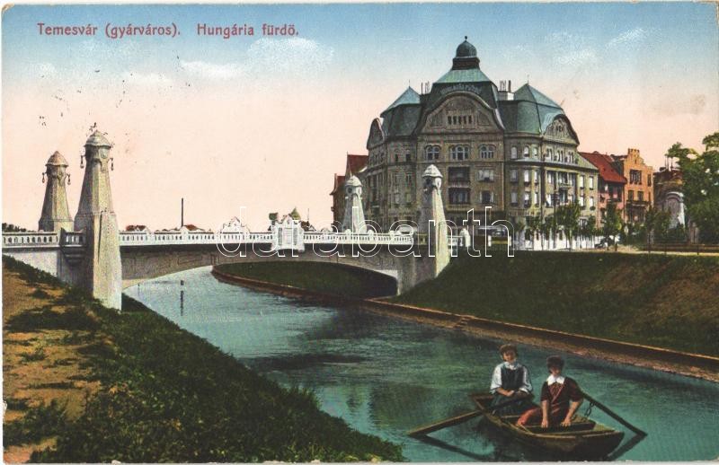 Leírás: 1914 Temesvár, Timisoara; Gyárváros, Hungária fürdő, híd / Fabrica, spa, bridge