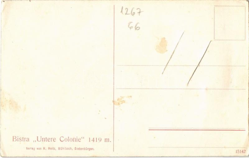1915 Bisztratelep, Vartótelek, Tau Bistra; Bistra "Untere Colonie" 1419 m. Verlag von H. Heitz / Bisztra alsó telep / Colonia din jos / lower colony (b)