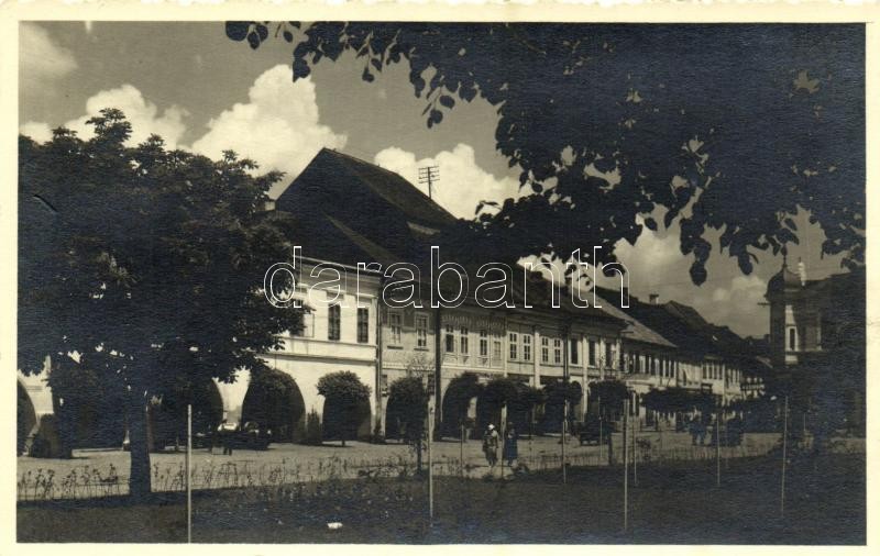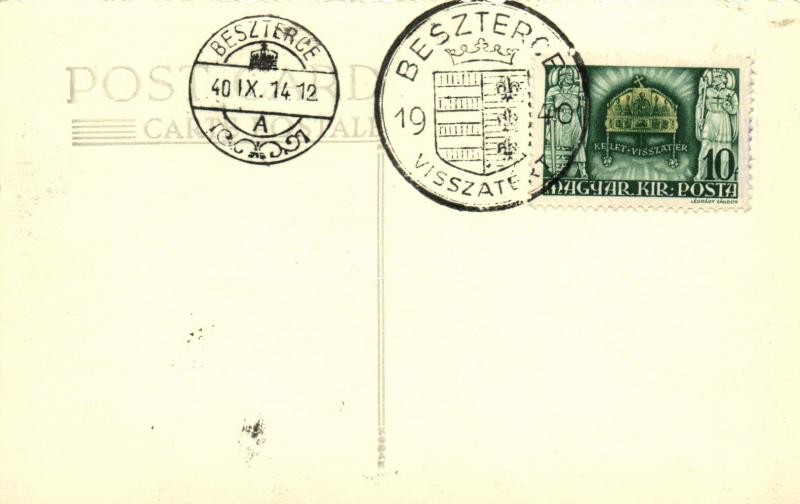 Leírás: 1940 Beszterce, Bistritz, Bistrita; utca, Suhány üzlete / street, shops. photo + "1940 Beszterce visszatért" So. Stpl