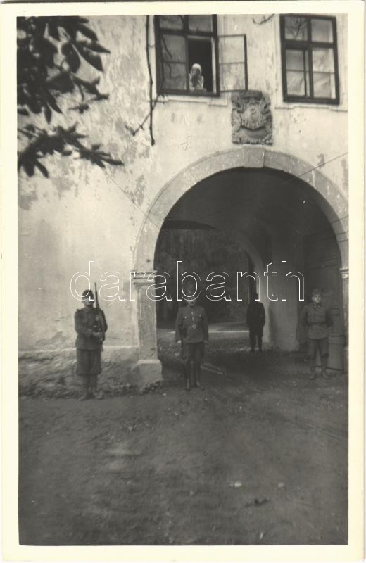 Leírás: Bethlen, Beclean; Bethlen András kastély, katonák a kapuban / castle, soldiers in the gate. photo