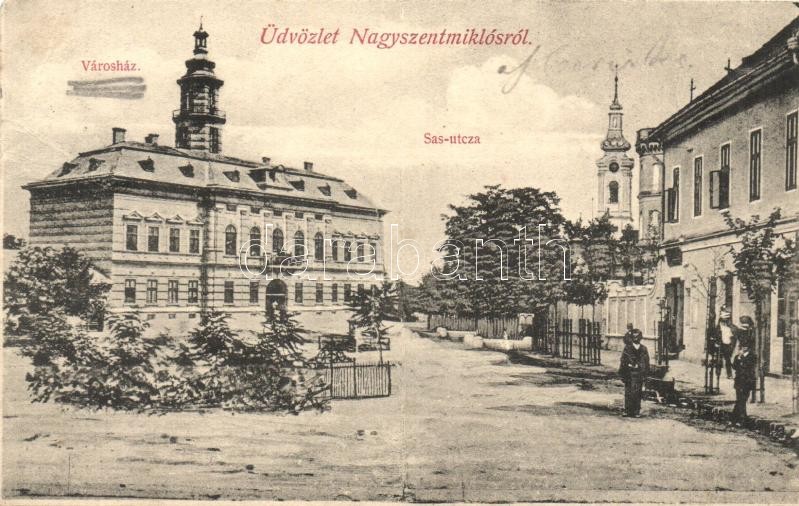 Nagyszentmiklós, Sannicolau Mare; Városháza, Sas utca, Wiener Náthán k... https://www.darabanth.com/hu/360-Gyorsarveres/360.0/Kepeslapok/Erdely~1000006/Nagyszentmiklos-Sannicolau-Mare-Varoshaza-Sas-utca-Wiener-Nathan-kiadasa-city-hall-stre~II1588637