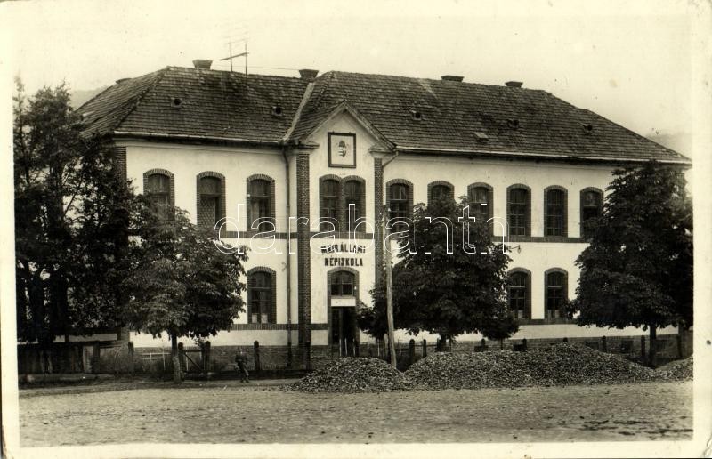 Leírás: Naszód, Nasaud; Állami elemi iskola, magyar címer / school, Hungarian coat of arms