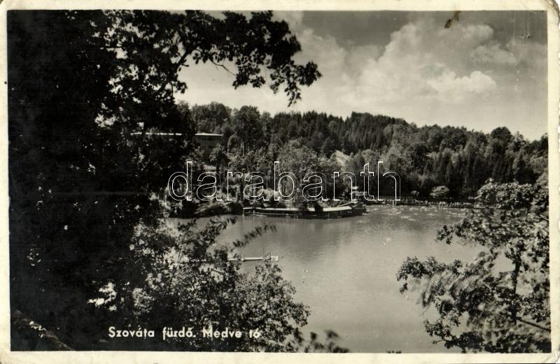 Szováta-fürdő, Baile Sovata; Medve-tó / lake (worn corners) https://www.darabanth.com/hu/360-Gyorsarveres/360.0/Kepeslapok/Erdely~1000006/Szovata-furdo-Baile-Sovata-Medve-to-lake-worn-corners~II2070528