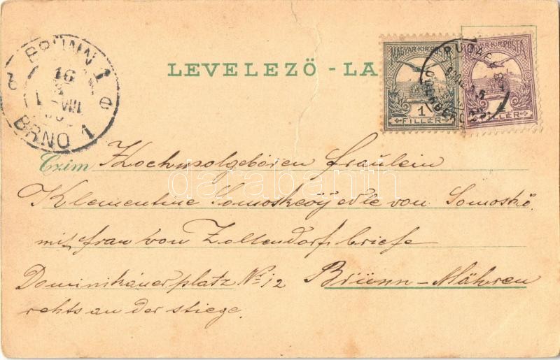 Leírás: 1900 Léva, Levice; Főgimnázium, várrom. Schwidernoch Károly kiadása / grammar school, castle ruin. Art Nouveau, floral, litho (fa)