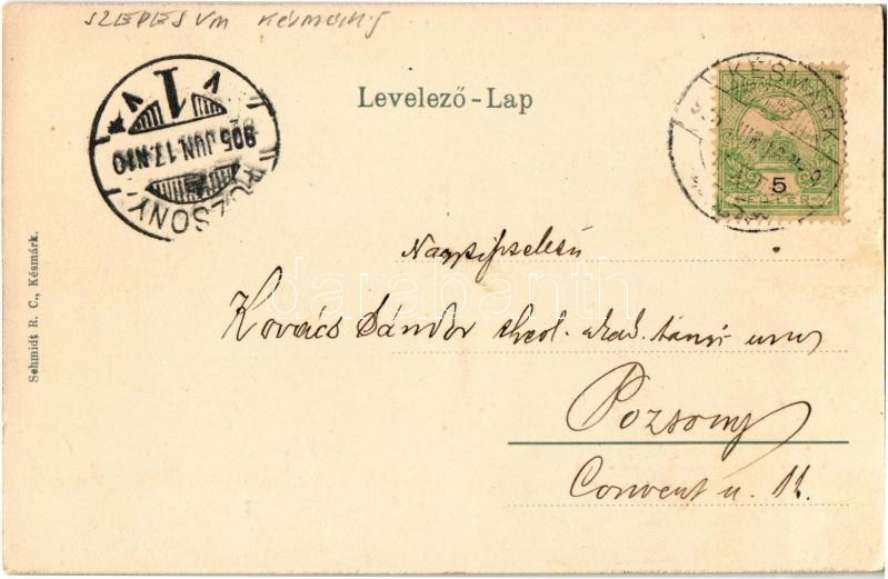 Leírás: 1905 Késmárk, Kezmarok; Thököly vár. Kiadja Schmidt R. C. / castle (EK)