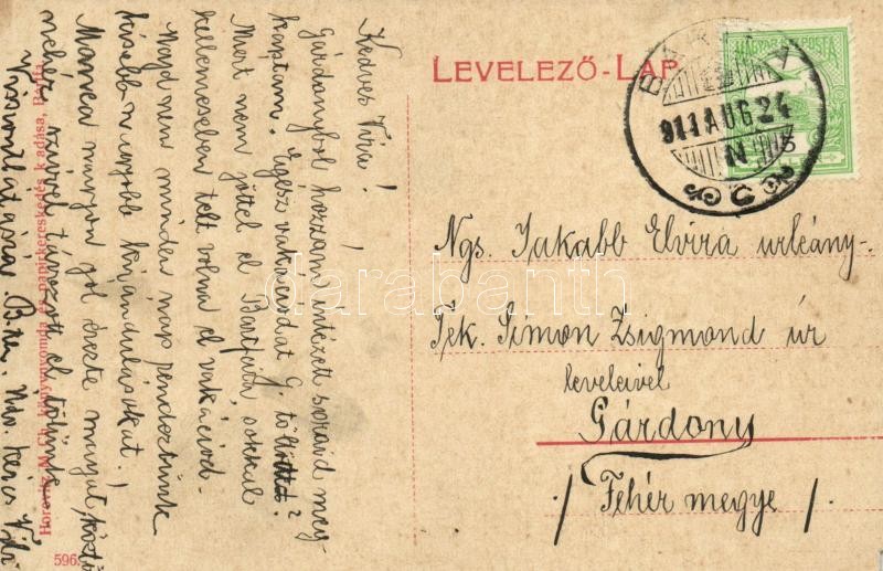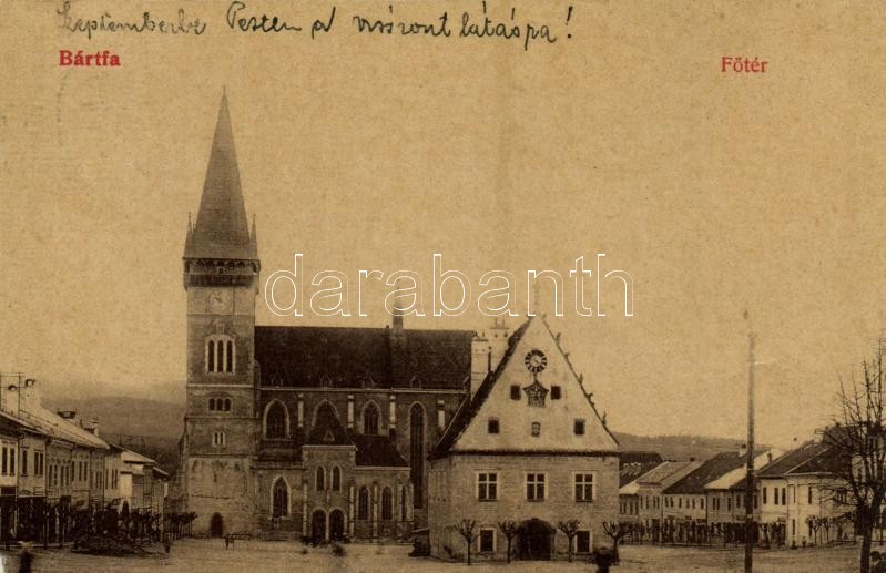 1911 Bártfa, Bártfafürdő, Bardejovské Kúpele, Bardiov, Bardejov; Fő tér, Szent Egyed templom, a régi városháza (Sáros vármegyei múzeum), üzletek. W. L. (?) 596. Kiadja Horovitz M. Ch. könyvnyomdája / main square, church, old town hall (Sáros County museum), shops (EM)
