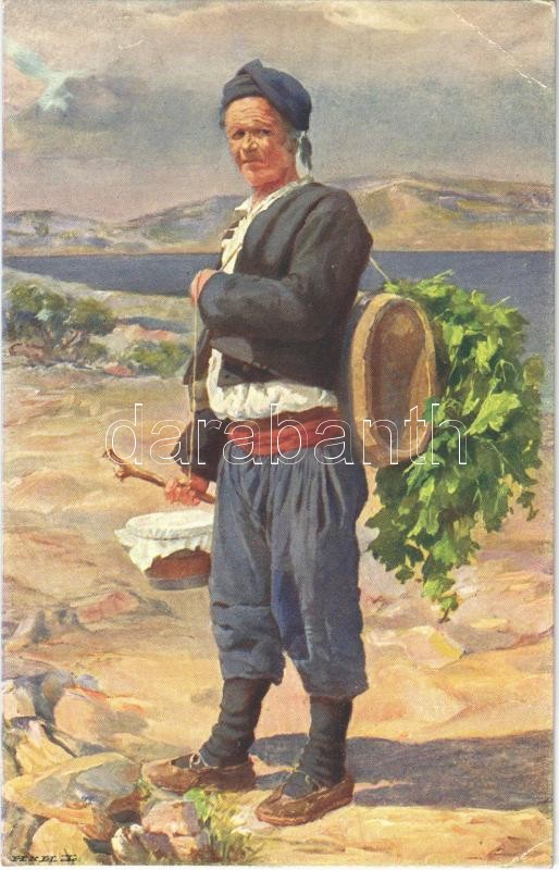 Rakousko-uher. typy lidové. Serie XVIII. c. 1. Istrie. II. Sedlák z Orleca (ostrov Cres). R. Prombergra / Austro-Hungarian folklore from Coratia, Orlec s: L. Kleinmondové (EB)