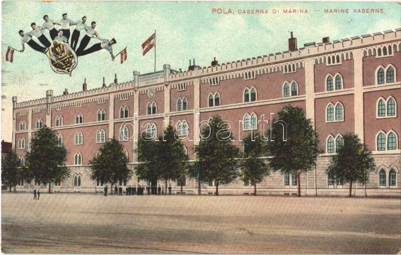 1913 Pola, Pula; Caserna di Marina / Marine Kaserne / Osztrák-magyar h... https://www.darabanth.com/hu/360-Gyorsarveres/360.0/Kepeslapok/Hadihajo~1000047/1913-Pola-Pula-Caserna-di-Marina-Marine-Kaserne-Osztrak-magyar-haditengereszeti-laktanya-ma~II2074821