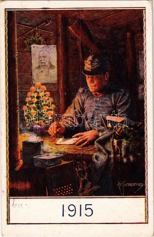 A K.u.K. hadsereg katonája 1915 karácsonyán levelet ír / WWI Austro-Hungarian military, soldier writing letters on Christmas Eve of 1915, Franz Joseph s: Kuderna (EK)