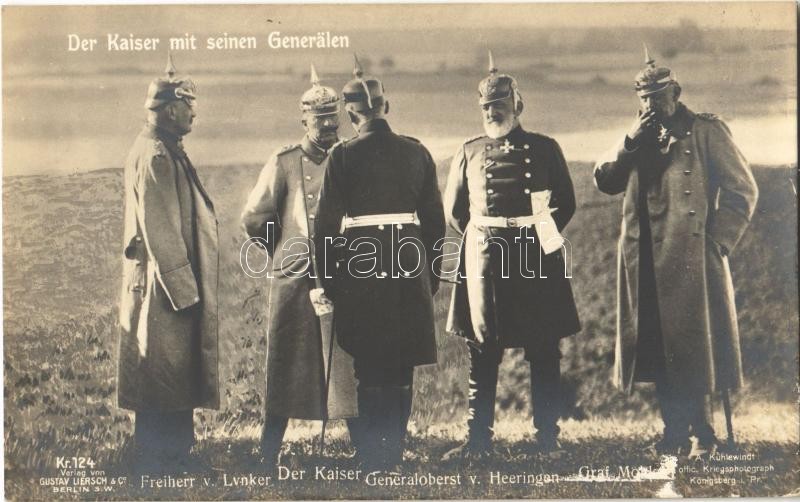 Der Kaiser mit seinen Generalen, Freiherr v. Lynker, Generaloberst v. Heeringen, Graf Moltke / WWI German military, Emperor Wilhelm II with his generals