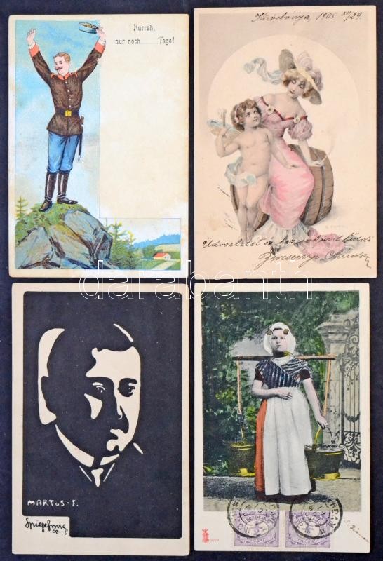 113 db főleg RÉGI motívum képeslap: gyerek, művész, reklám, katonai, híres ember, sport, folklór, pár fotó és litho / 113 mostly pre-1945 motive postcards: children, art, advertisement, military, famous people, sport, folklore. Some photos and lithos
