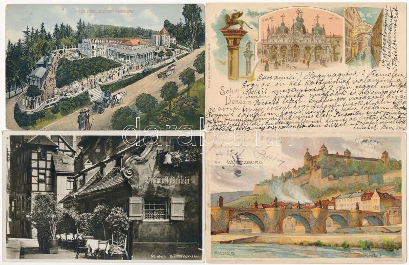 Leírás: 19 db RÉGI külföldi városképes lap, több litho / 19 pre-1945 European town-view postcards, many litho