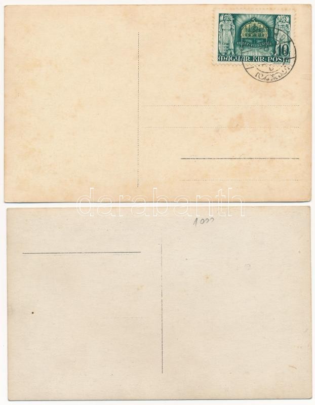 2 db RÉGI bevonulás-kori fotó képeslap: Székelyhíd és ismeretlen város / 2 photo postcards from the entry of the Hungarian troops: Sacueni and one unidentified town