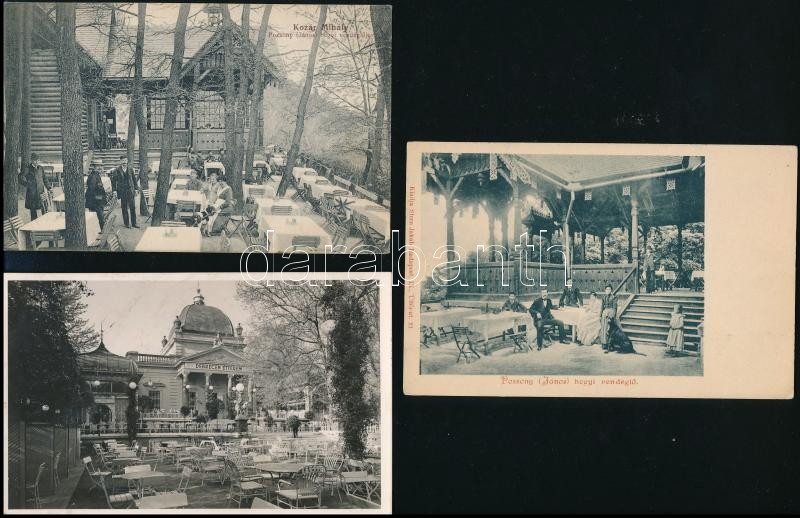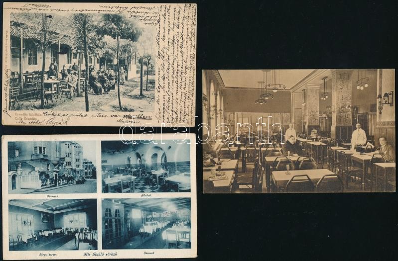 21 db RÉGI történelmi magyar városképes lap: éttermek, vendéglők, kiállítások és vásárok. Több érdekes jó lappal / 21 pre-1945 town-view postcards from the Kingdom of Hungary: restaurant, exhibitions, fairs. Some interesting pieces