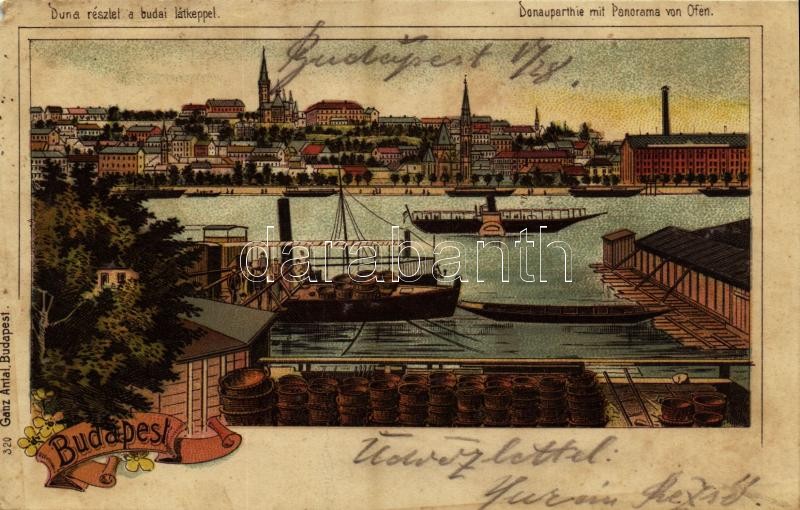 1901 Budapest, Duna részlet a budai látképpel. Ganz Antal 320. Art Nou... https://www.darabanth.com/hu/360-Gyorsarveres/360.0/Kepeslapok/Magyarorszag~1000005/1901-Budapest-Duna-reszlet-a-budai-latkeppel-Ganz-Antal-320-Art-Nouveau-floral-litho-r~II2075058