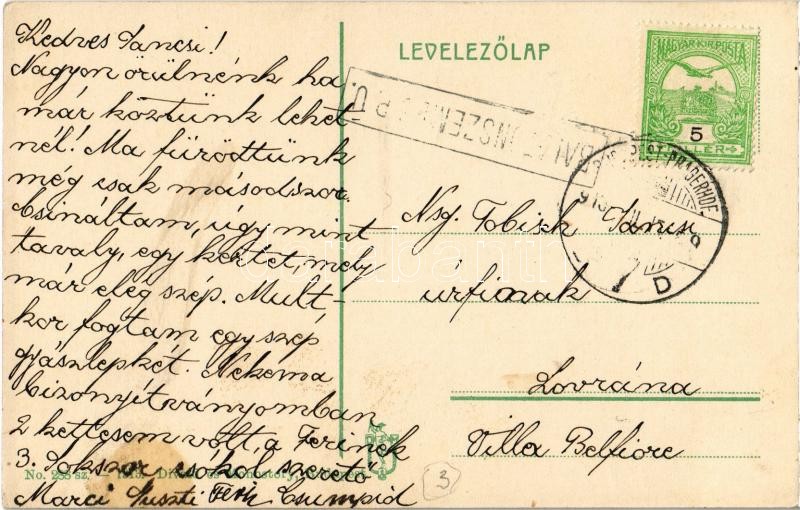 Leírás: 1913 Balatoni élet, halászok és a "Kelén" csavargőzös + Balatonszemes P.U. + Budapest-Pragerhof vonat pecsét