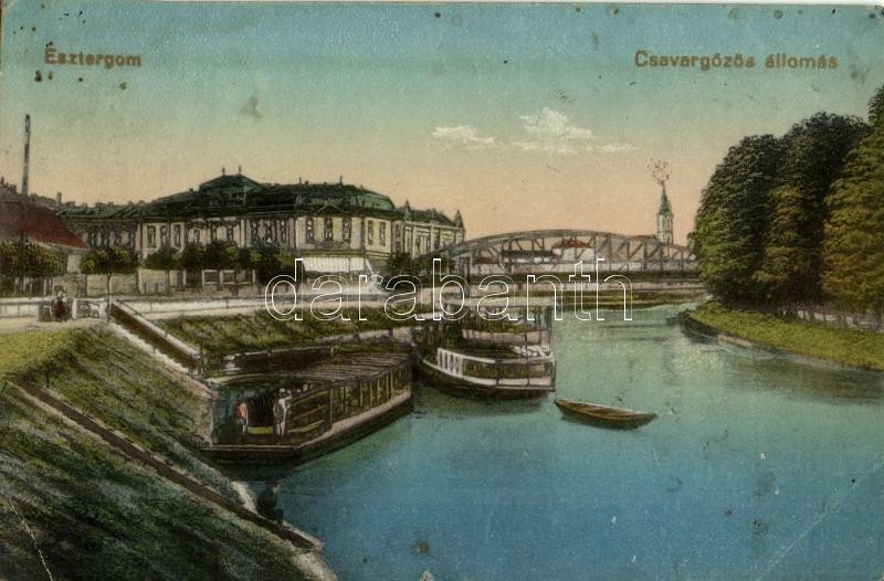 1928 Esztergom, csavargőzös állomás, híd (EK) https://www.darabanth.com/hu/360-Gyorsarveres/360.0/Kepeslapok/Magyarorszag~1000005/1928-Esztergom-csavargozos-allomas-hid-EK~II2056826