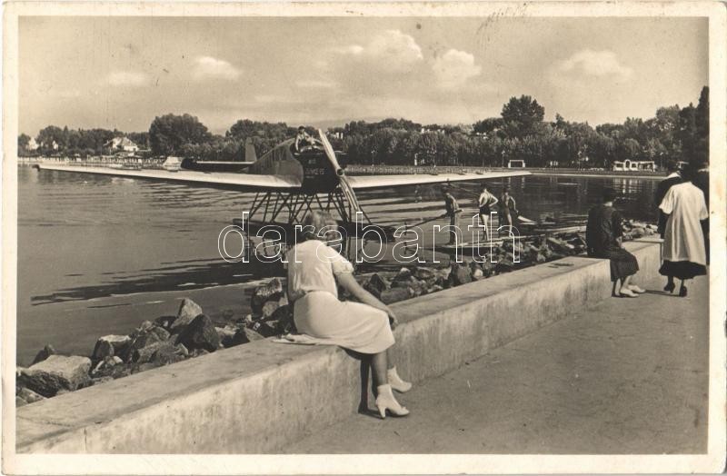 Leírás: 1937 Siófok, Junkers "Sió" HA-JAD lajstromjelű hidroplán a mólónál