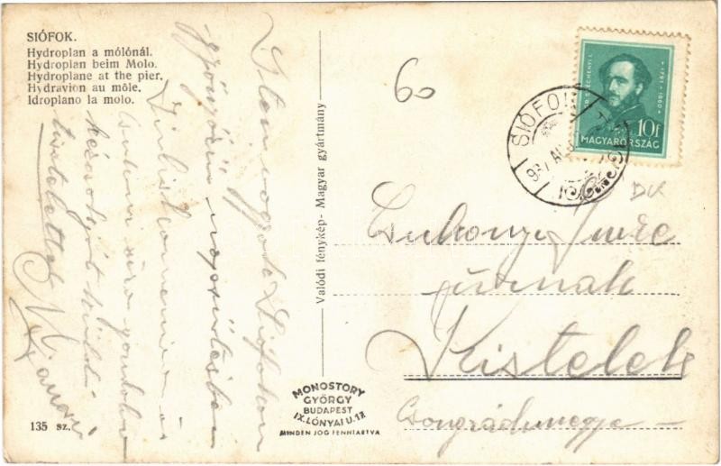 1937 Siófok, Junkers "Sió" HA-JAD lajstromjelű hidroplán a ... https://www.darabanth.com/hu/360-Gyorsarveres/360.0/Kepeslapok/Magyarorszag~1000005/1937-Siofok-Junkers-Sio-HA-JAD-lajstromjelu-hidroplan-a-molonal~II2074247