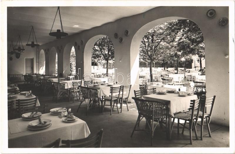 Leírás: 1940 Budapest VIII. Vitéz Kecskés János sörkertje a "Sörkatakomba", terasz, kert. Eszterházy utca 6.