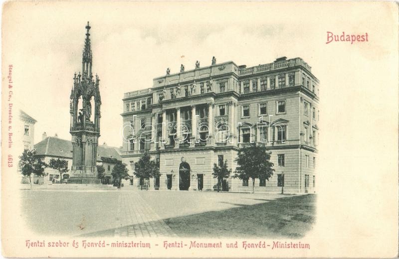 Budapest I. Szent György tér, Honvédelmi Minisztérium, Hentzi szobor https://www.darabanth.com/hu/360-Gyorsarveres/360.0/Kepeslapok/Magyarorszag~1000005/Budapest-I-Szent-Gyorgy-ter-Honvedelmi-Miniszterium-Hentzi-szobor~II2075147