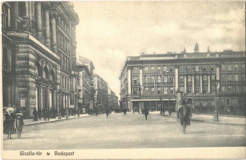 Budapest V. Gizella tér (Vörösmarty tér), Pesti Magyar Kereskedelmi Bank, Takarékpénztári Betétek, Szállítmány Baleset és Üvegbiztosító. M.T és F.I. Koch Willy kiadása