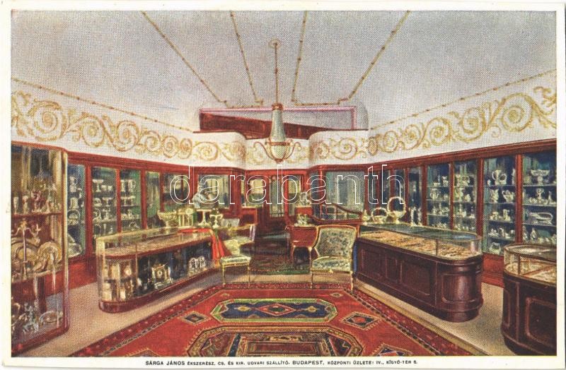 Budapest V. Sárga János ékszerész és műötvös cs. és kir. udv. szállító... https://www.darabanth.com/hu/360-Gyorsarveres/360.0/Kepeslapok/Magyarorszag~1000005/Budapest-V-Sarga-Janos-ekszeresz-es-muotvos-cs-es-kir-udv-szallito-kozponti-uzlete~II2073922