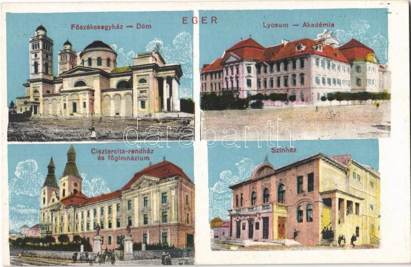 Leírás: Eger, Főszékesegyház, Dóm, Lyceum, Akadémia, Cisztercita rendház és főgimnázium, Színház