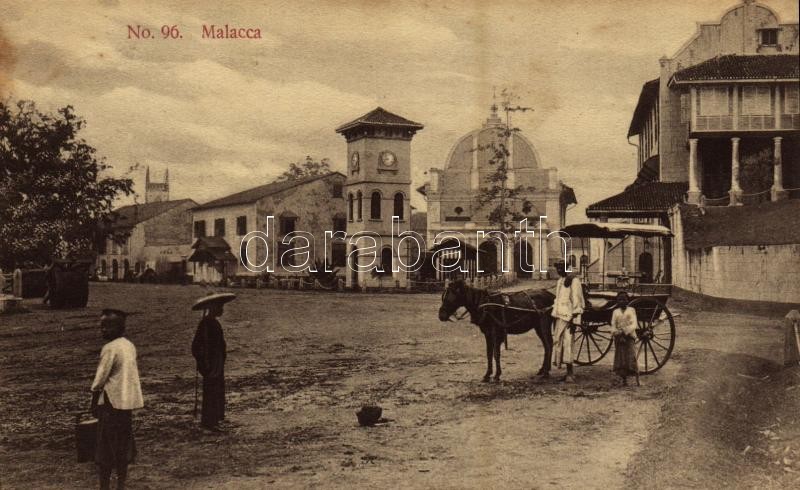 Melaka, Malacca; main square, horse cart, folklore, clock tower (fl) https://www.darabanth.com/hu/360-Gyorsarveres/360.0/Kepeslapok/Malajzia~1000060/Melaka-Malacca-main-square-horse-cart-folklore-clock-tower-fl~II2077627