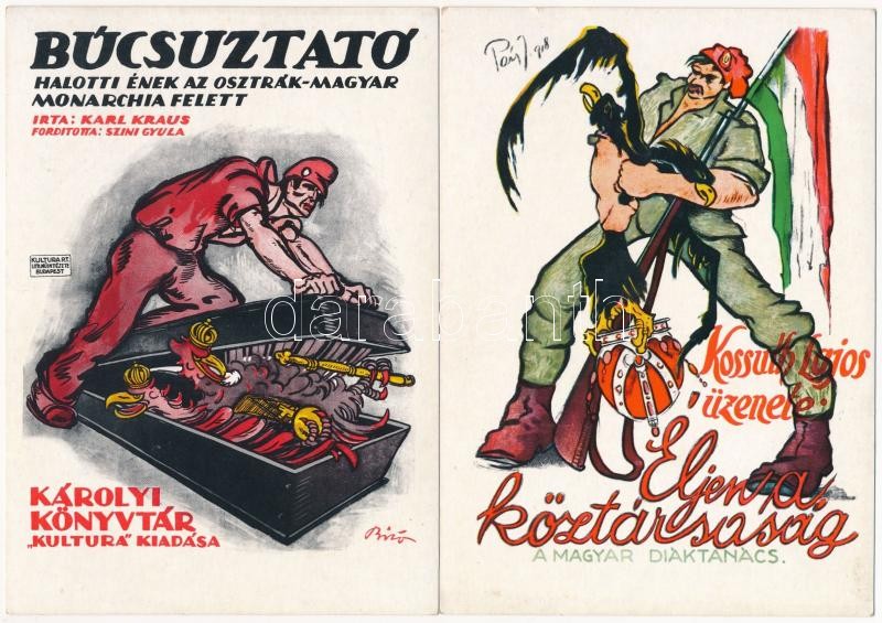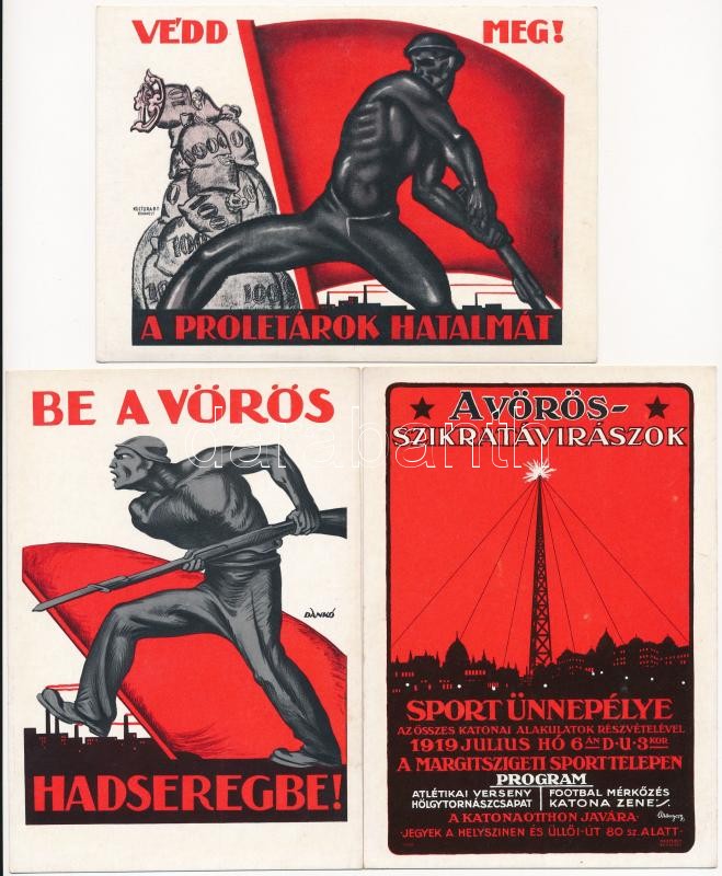 A Magyar Tanácsköztársaság Plakátjai. Magyar Munkásmozgalmi propaganda - 18 darab használatlan modern képeslap (Bíró, Dankó, Tábor, Berény..stb) / Posters of the Hungarian Soviet Republic, Hungarian labor movement propaganda - 18 modern unused postcards
