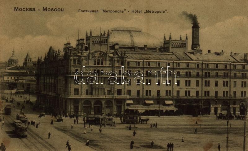 Leírás: Moscow, Moskau, Moscou; Hotel Metropole, horse-drawn tram, shops, tram. Knackstedt & Näther 21. (fl)