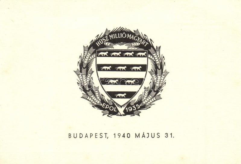 Húsz Millió Magyart EPOL 1935. A budapesti Egészségpolitikai Társaság propaganda reklámlapja / Budapest Health Policy Society's propaganda postcard (EK)