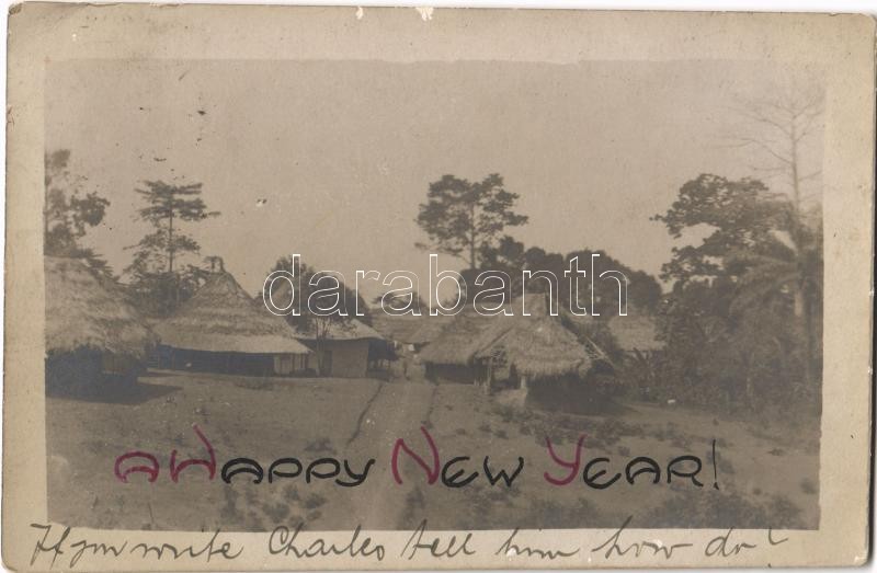 Leírás: 1918 Freetown, huts, African folklore. "Happy New Year" greeting. photo