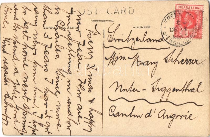 1918 Freetown, huts, African folklore. "Happy New Year" gree... https://www.darabanth.com/hu/360-Gyorsarveres/360.0/Kepeslapok/Sierra-Leone~1000080/1918-Freetown-huts-African-folklore-Happy-New-Year-greeting-photo~II2076283