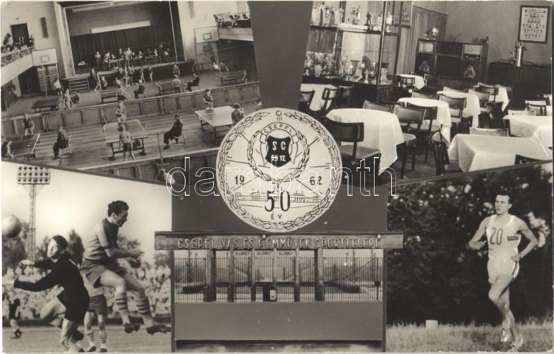 1962 Csepel Sport Club (SC) 50 éves, Csepel Vas és Fémművek Sporttelepe. Képzőművészeti Alap Kiadóvállalat / 50th years anniversary of a Hungarian spot club (fl)