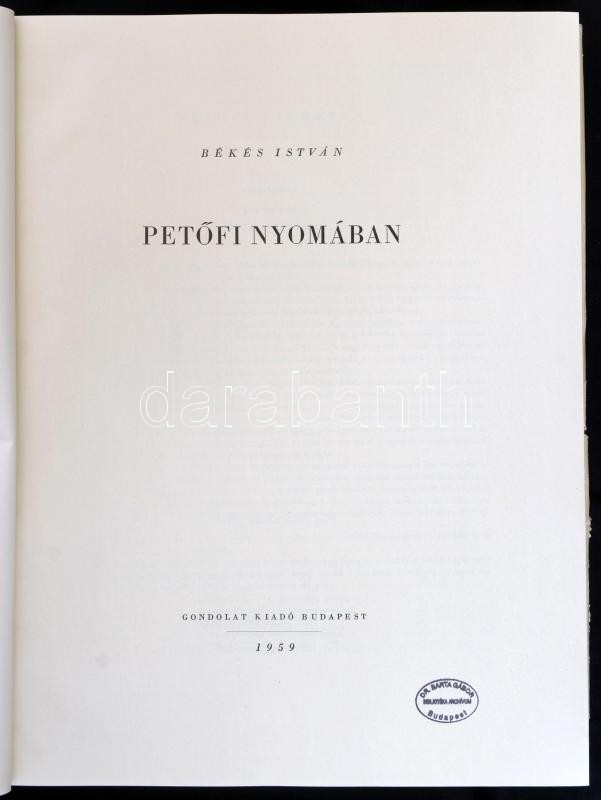 Békés István: Petőfi nyomában. Bp., 1959, Gondolat Kiadó. Kiadói egész... https://www.darabanth.com/hu/360-Gyorsarveres/360.0/Konyvek/Konyvek-Egyeb-ritkasagok~1500020/Bekes-Istvan-Petofi-nyomaban-Bp-1959-Gondolat-Kiado-Kiadoi-egeszvaszon-kotes-serC3~II2072143