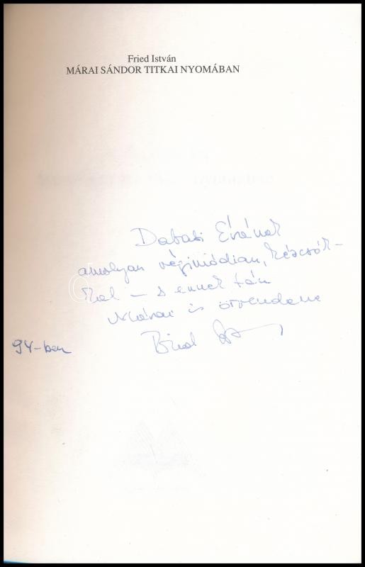 Fried István: Márai Sándor titkai nyomában. Salgótarján, 1993, Mikszát... https://www.darabanth.com/hu/360-Gyorsarveres/360.0/Konyvek/Konyvek-Egyeb-ritkasagok~1500020/Fried-Istvan-Marai-Sandor-titkai-nyomaban-Salgotarjan-1993-Mikszath-Kiado-Kiadoi-papi~II2070922