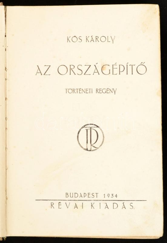 Kós Károly: Az országépítő. Történeti regény. Bp., 1934, Révai. Kiadó ... https://www.darabanth.com/hu/360-Gyorsarveres/360.0/Konyvek/Konyvek-Egyeb-ritkasagok~1500020/Kos-Karoly-Az-orszagepito-Torteneti-regeny-Bp-1934-Revai-Kiado-festett-illusztra~II2057100