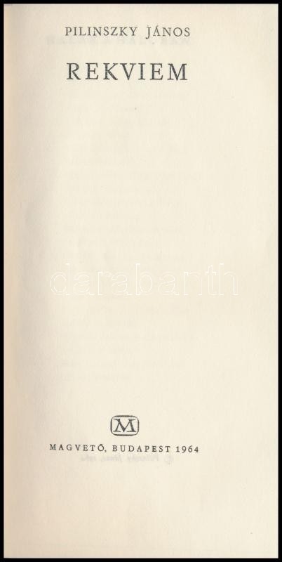 Pilinszky János: Rekviem. Bp.,1964, Magvető. Első kiadás. Kiadói egész... https://www.darabanth.com/hu/360-Gyorsarveres/360.0/Konyvek/Konyvek-Egyeb-ritkasagok~1500020/Pilinszky-Janos-Rekviem-Bp-1964-Magveto-Elso-kiadas-Kiadoi-egeszvaszon-kotes-kiadoi~II2075031