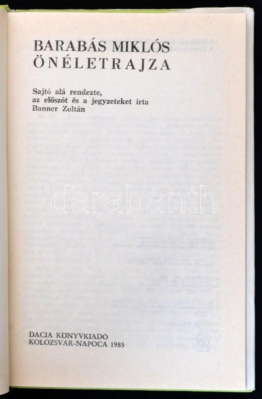 Barabás Miklós önéletrajza. Sajtó alá rendezte és az előszót és a jegyzeteket írta: Banner Zoltán. Kolozsvár/Napoca,1985, Dacia. Kiadói kartonált papírkötés, kiadói papír védőborítóban.