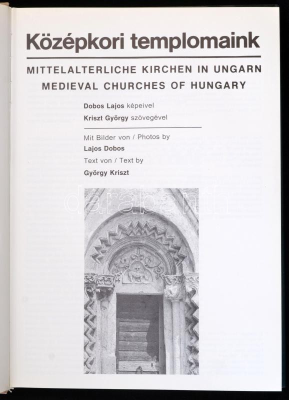 Kriszt György: Középkori templomaink. Dobos Lajos képeivel. Bp., 1990, MTI. Gazdag képanyaggal, magyar, angol és német nyelven. Kiadói egészvászon-kötés, kiadói papír védőborítóban. /
