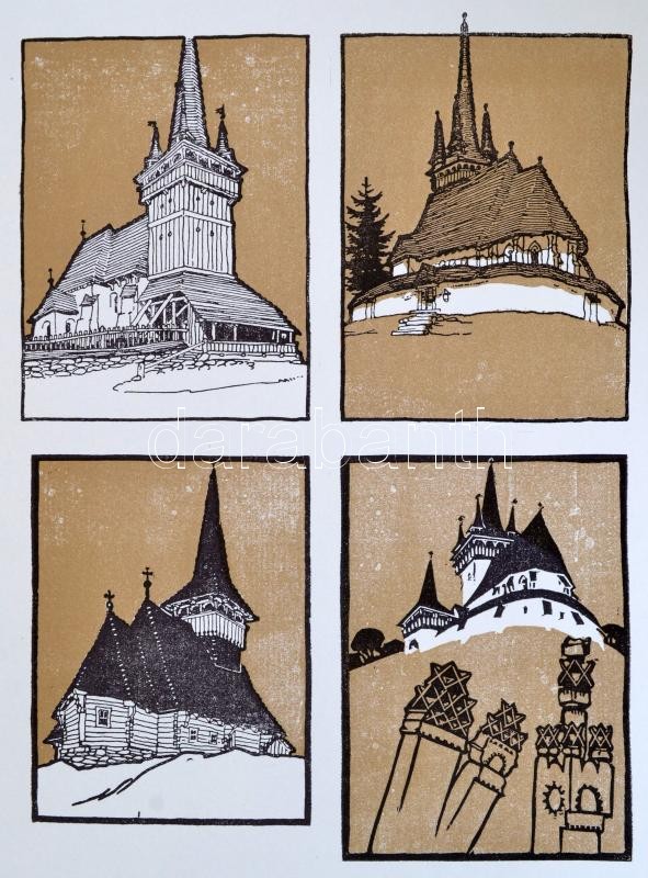 Székely András: Kós Károly. Bp., 1979, Corvina, Offset és Játékkártya Nyomda, 12 p+12 t.. Kós Károly grafikai munkásságának bemutatása, színes illusztrált kiadvány. Kiadói illusztrált, papír mappában, magyar, angol, német és francia nyelven.